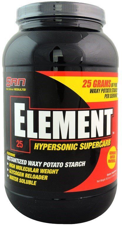 • Element премиального бренда SAN зарекомендовал себя, как источник сверхбыстрых углеводов, когда либо существовавших на рынке спортивного питания. Ведь каждая порция Element содержит 25 грамм амилопектина, одного из разновидностей крахмала, имеющей разветвленную цепочку молекул глюкозы. Одним из свойств амилопектина является его неспособность выстраивать прочные связи, что означает их быстрое разрушение в желудке и быстрое всасывание в кишечнике. Таким образом, Element способен мгновенно восполнить запасы гликогена до 80%, при этом быстрее, чем декстроза или мальтодекстрин, достигая высокую гидратацию мышц.
