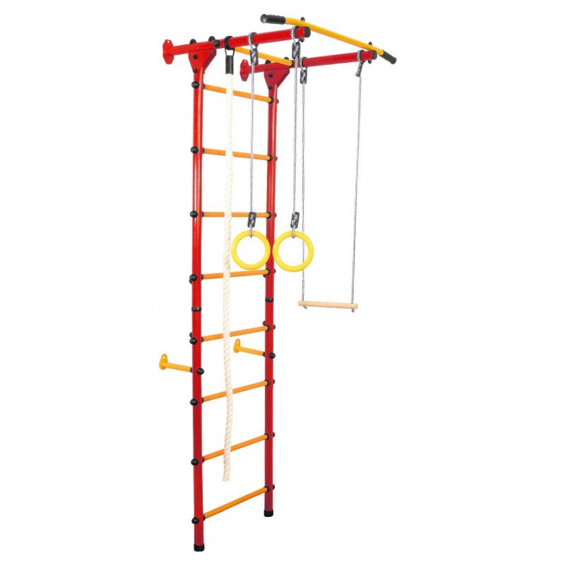 ступени с ПВХ покрытием, турник регулируемый, канат, кольца гимнастические, трапеция, канат х/б.